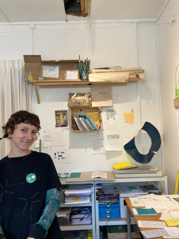 Her work comes from an interest for paper and its language and her projects take their final form as sculptural installations, prints, books and shapes in between. Her practice is a collaboration with the mediums she uses. Leaning into the flexibility of paper and words, she gives her materials space to speak, to doubt, to become poetry, as a concept of language.