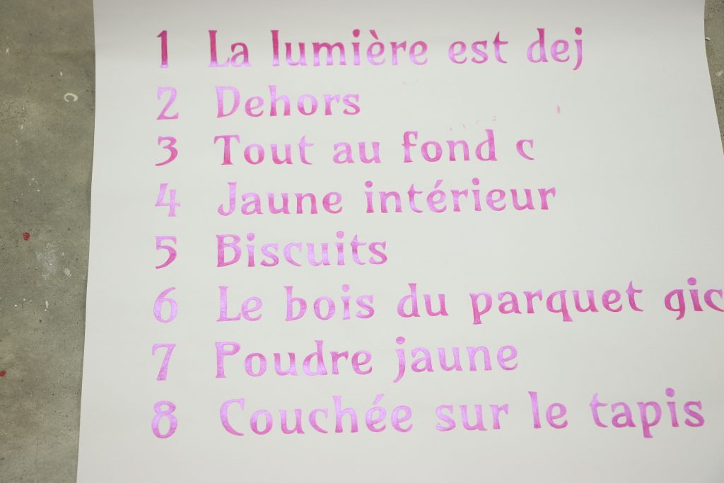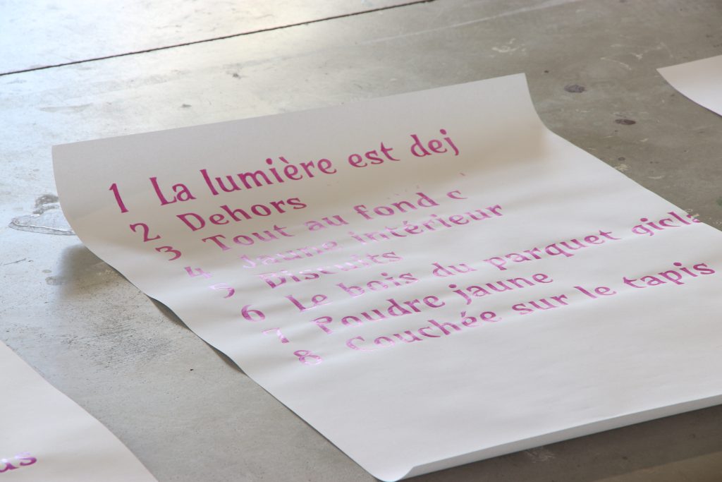 Iridescent acrylic on paper, three sheets of 49 x 65 cm each