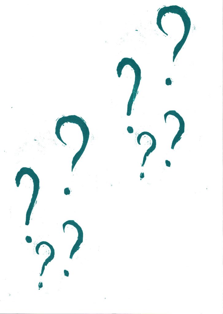 Question marks, 2023. Screen-print on paper, 21 x 29,7 cm. Printed at Isotop Fellesatlier, Bergen (NO) with the help of Jad.