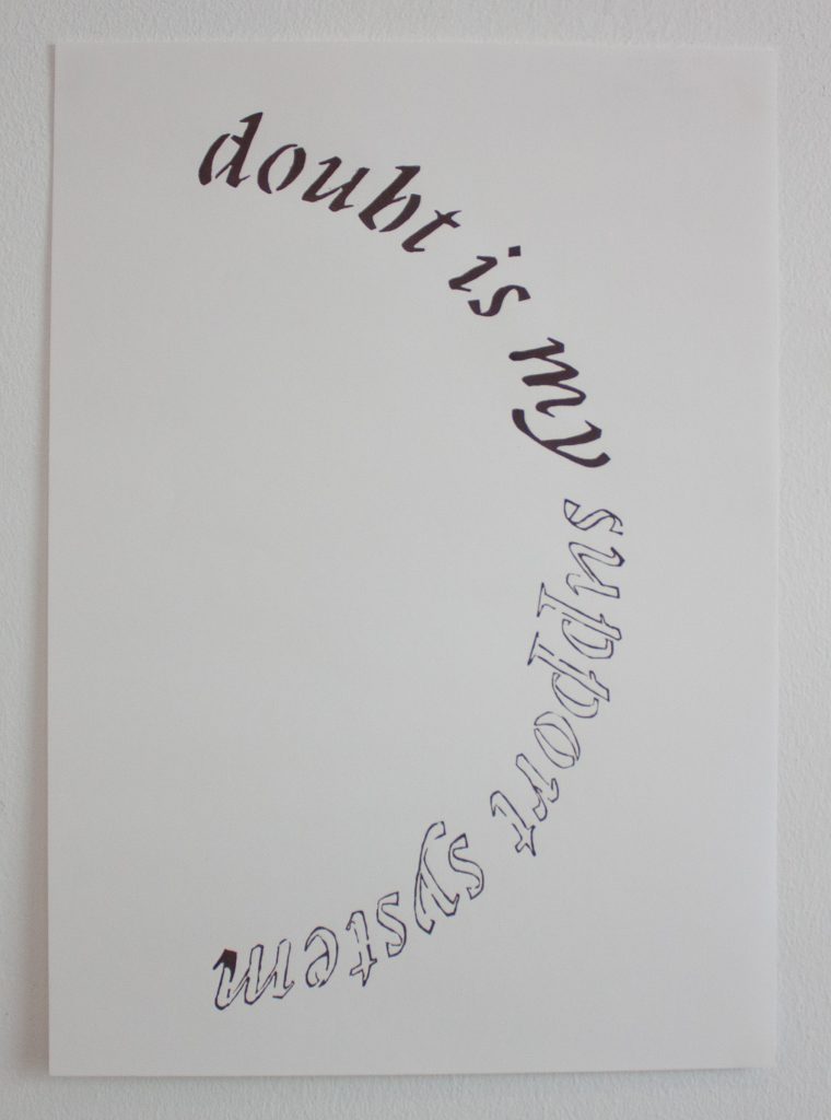 doubt is my support system, 2024. Edition of 30. Screen-print on paper, 29,7 x 42 cm. Printed at Isotop Fellesatelier, Bergen (NO) with the help of Gaspard.
