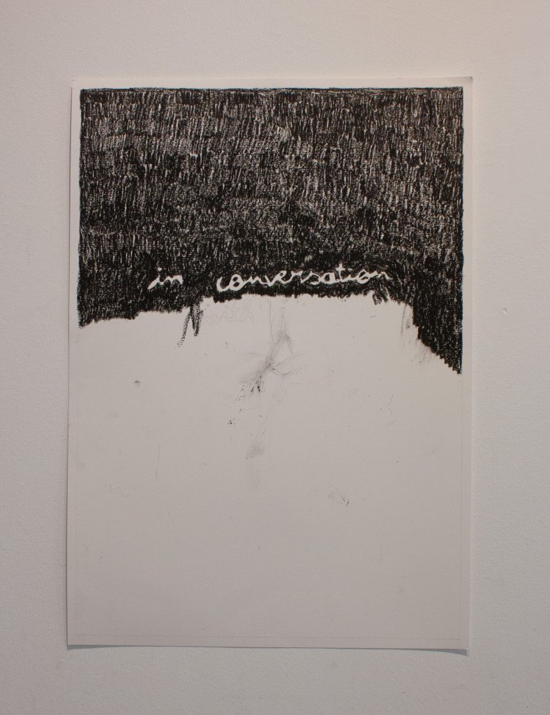 in conversation with, 2025. Drawing, oil pastel and pencil on paper, 42 x 59,4 cm.
