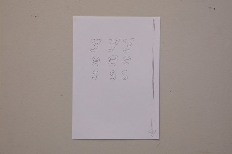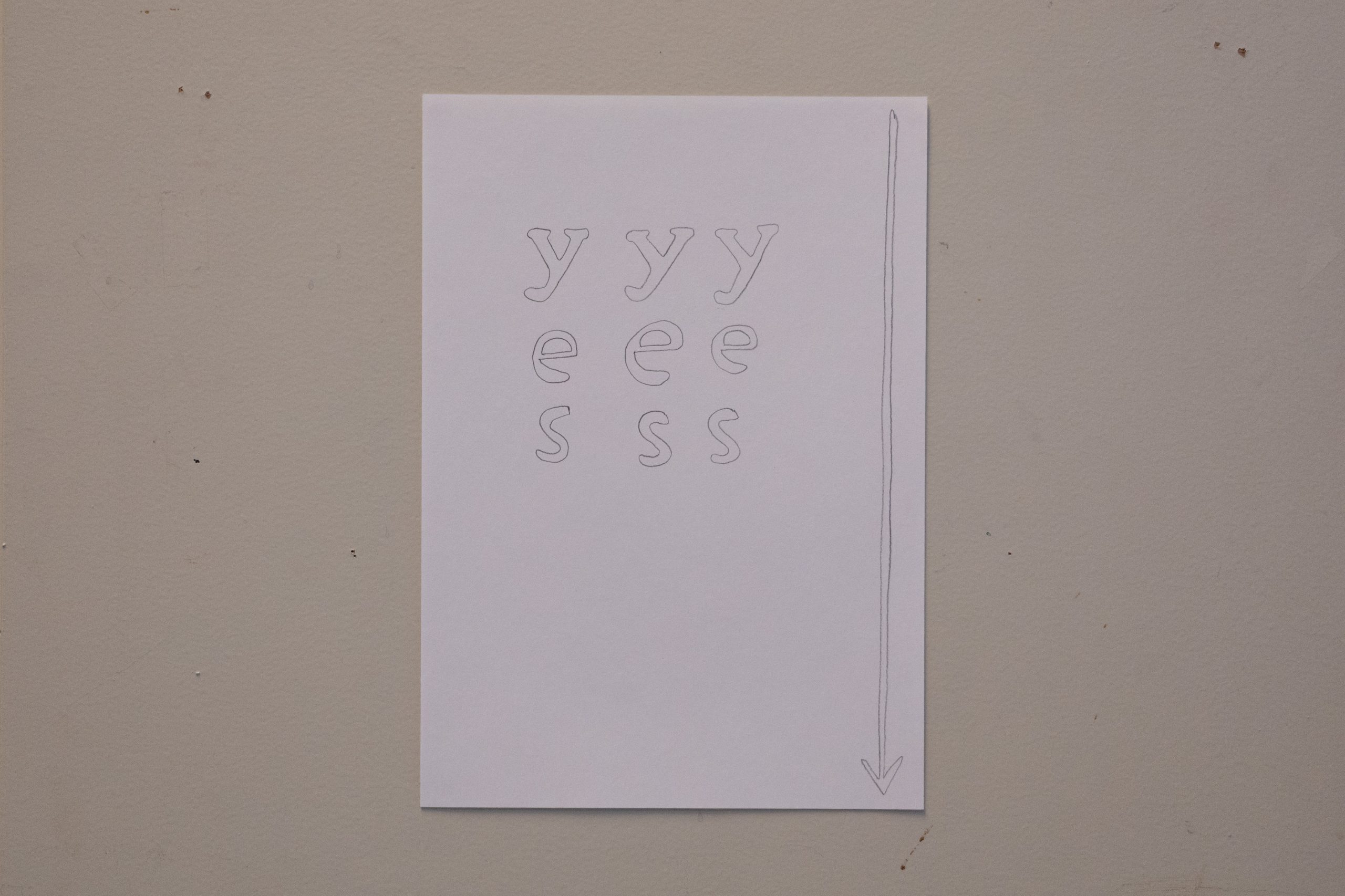 yes yes yes, 2026. Drawing, pencil on paper, 21 x 29,7.