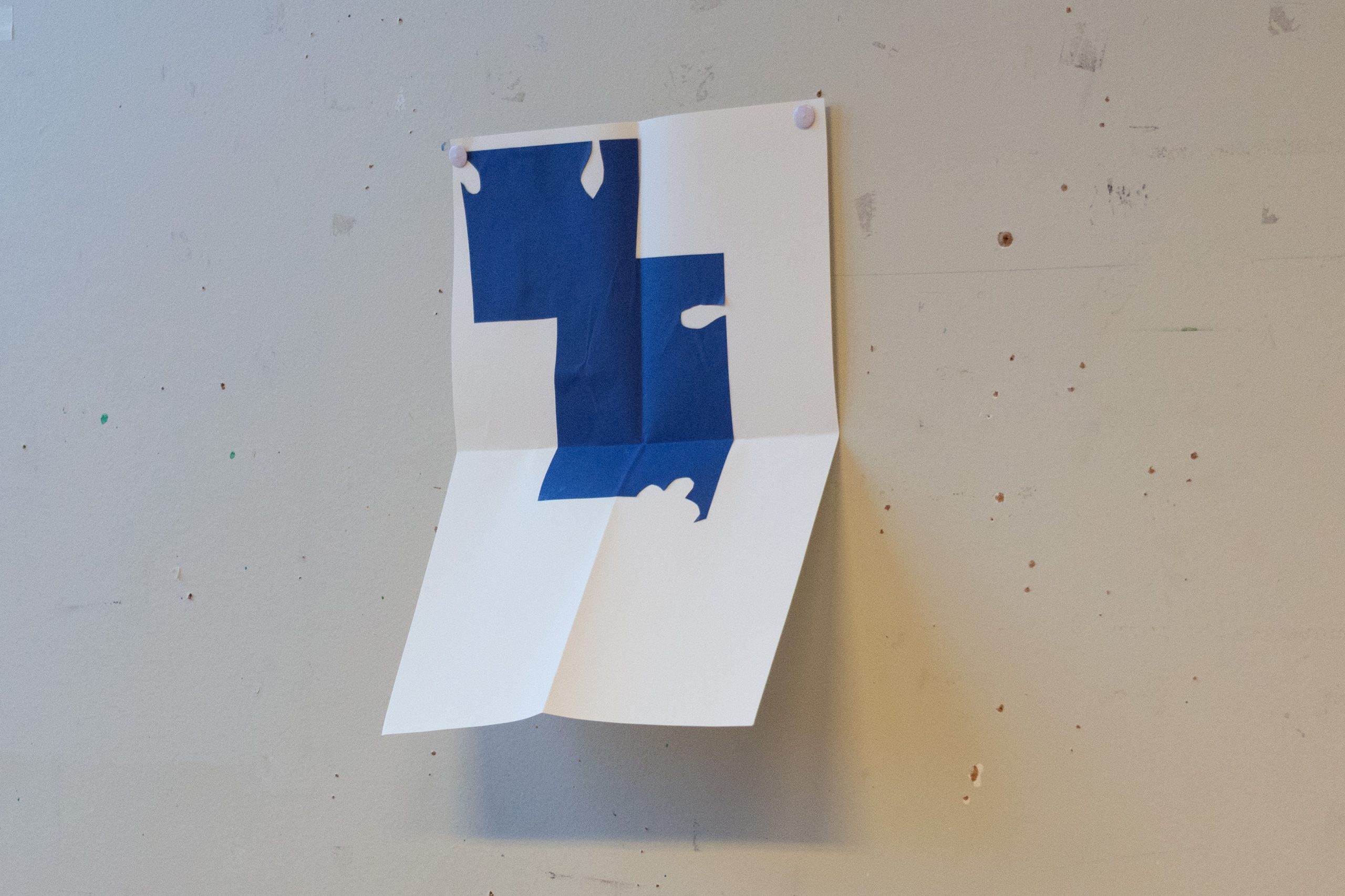 Taped, 2022. Leftover riso-printed paper, tape. 30 x 30 cm.