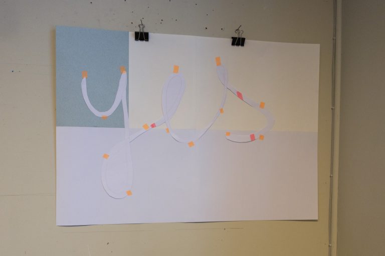 yes, 2026. Collage, paper, tape, pencil drawing, 59,4 x 84 cm.