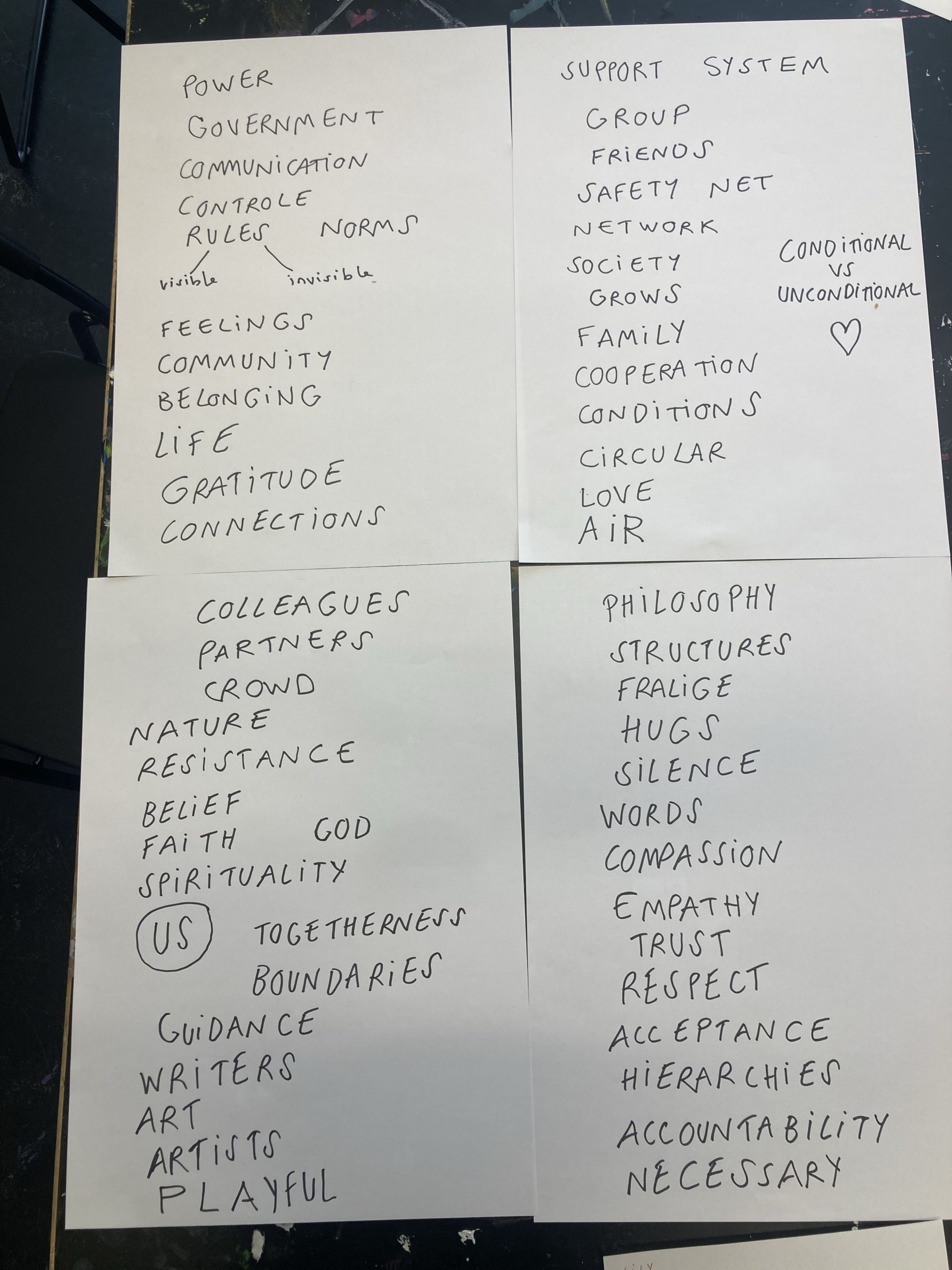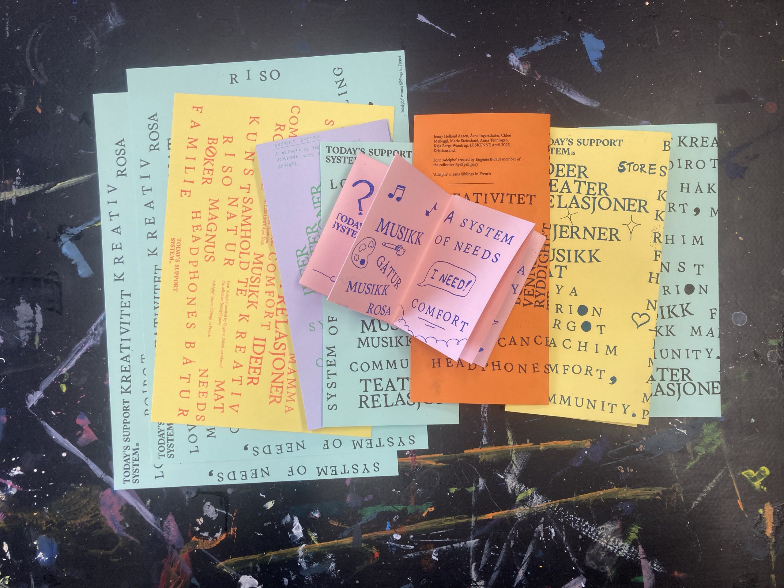 Participants are invited to discuss and reflect upon the idea of support system, its meaning, multiple shapes and roles. Together, they collect names and gather communities in order to create an anthology of support systems and interconnections. The result of this gathering is a riso-printed pamphlet, an archive created collectively.